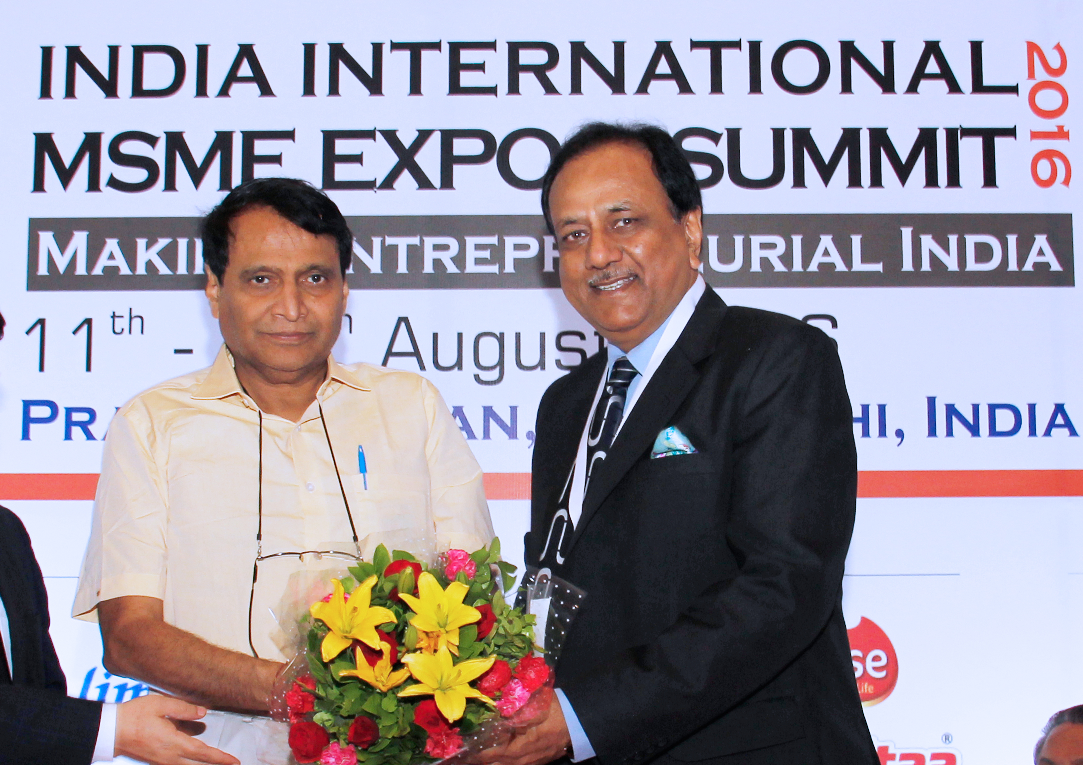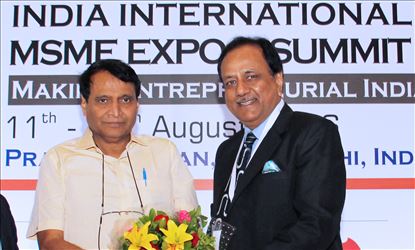 Mr. Suresh Prabhu, Union Minister of Railways with Mr. Rajnish Goenka, Chairman - MSMEs Development Forum at the 3rd India - International MSME & Startup Expo 2016 ,The event will be inaugurated by Mr. Suresh Prabhu, Union Minister of Railways along with Gen. Dr. VK Singh (Retd.), Union Minister of State - Ministry of External Affairs & Dr. Jitendra Singh (MoS).