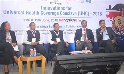 In an endeavour to encourage health innovations in India and Africa, a conclave was organised by the Public Health Foundation of India (PHFI), Amref Africa, the Institute of Development Studies, UK (IDS UK), Indian Institute of Public Health Gandhinagar in partnership with NITI Aayog. This event was hosted at the GE Healthcare Centre in Bengaluru. The conclave deliberated on ways to leverage the transformational potential of these innovations and accelerate progress towards achieving UHC in low-and middle-income countries (LMIC) in Asia and Africa. Professor Vinod Paul, Member, NITI Aayog, Shri. Alok Kumar, Advisor (Health), NITI Aayog, Professor K Srinath Reddy, President, PHFI, Ms. Desta Lakew, Director, Amref Africa and Mr. Nalinkanth Golagunta, CEO, GE – India was present for the inaugural session.