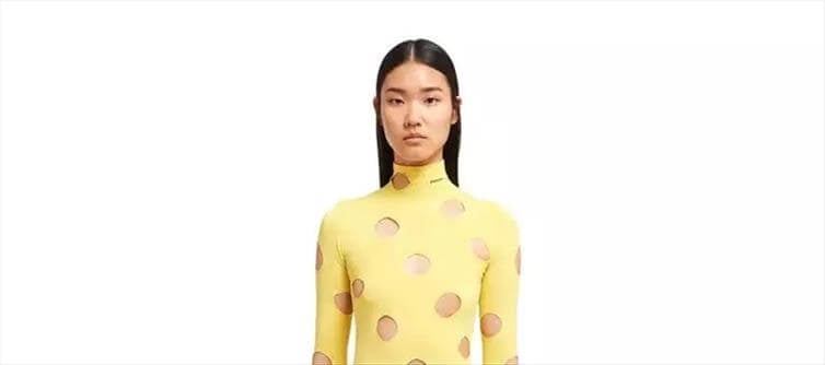 കമ്പനിയുടെ സ്പ്രിങ്-സമ്മർ/2021 കളക്ഷന്റെ ഭാഗമായി അവതരിപ്പിച്ചിരിക്കുന്ന വിസ്കോസ് ടർട്ടിൽനെക്ക് സ്വെറ്റർ എന്ന് പേരുള്ള ഈ വസ്ത്രം പ്രസിദ്ധമായ സ്വിസ് ചീസിന്റെ വലിയൊരു ക്ഷണം മുറിച്ചെടുത്ത് തയ്യാറാക്കിയത് എന്നെ തോന്നൂ. ഏറ്റവും രസകരമായ കാര്യം വിലയാണ്, 905 പൗണ്ട്. അതായത് ഏകദേശം 90,000 രൂപ. "ദ്വാരങ്ങളുള്ള വിലയേറിയ ഓപ്പൺ വർക്ക് മോട്ടിഫിനാൽ തയ്യാറാക്കിയ ഈ വിസ്കോസ് ടർട്ടിൽനെക്ക് സ്വെറ്റർ സ്പ്രിംഗ് സമ്മർ 2021 കളക്ഷനിലെ പ്രധാനിയാണ്" എന്നാണ് പ്രാഡ വെബ്സൈറ്റിൽ നൽകിയിരിക്കുന്ന വിവരണം.