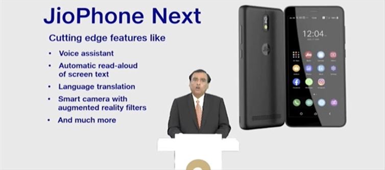 जियोफोन नेक्स्ट (Jiophone next) इस साल गणेश चतुर्थी यानी 10 सितंबर से बाजार में आ जाएगा। इस फोन को रिलायंस ने गूगल (google) के साथ मिलकर तैयार किया है। यह फोन एंड्रॉयड ऑपरेटिंग सिस्टम (android operating system) पर चलेगा। स्मार्टफोन में बेहतरीन कैमरा और एंड्रायड अपडेट भी मिलेंगे। फुली फीचर्ड इस स्मार्टफोन को मुकेश अंबानी ने भारत का ही नही दुनिया का सबसे सस्ता स्मार्टफोन बताया।