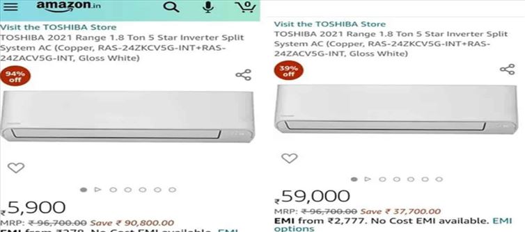 ఈ పొరపాటును వెంటనే గుర్తించిన ఆ వెబ్ సైట్ యాజమాన్యం సరి దిద్దింది. దీంతో సుమారు 6 వేల రూపాయలతో లక్ష రూపాయల ఎయిర్ కండిషనర్ సొంతం చేసుకోవాలనుకున్న వినియోగదారుల ఆశలు నీరుగారిపోయాయి. ప్రస్తుతం ఈ ఎయిర్ కండిషనర్ ధరపై 34 శాతం డిస్కౌంట్ ప్రకటించగా దాని ప్రస్తుత ధర రూ.59,000 వద్ద నిలిచింది. ఈ విషయం తెలిసిన నెటిజన్లు అమెజాన్ చేసిన పొరపాటును ప్రస్తావిస్తూ విమర్శలు ట్రోల్ చేస్తున్నారు.