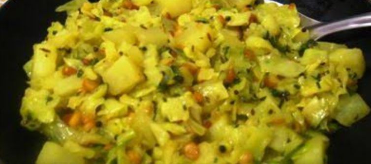 ముందుగా క్యాబేజిని కడిగి చిన్న ముక్కలుగా కోసుకోవాలి. ఇప్పుడు స్టవ్ వెలిగించి ఒక గిన్నె పెట్టి అందులో ముందుగా తురుముకున్న క్యాబేజి ముక్కలు, ఉప్పు, పసుపు, కొద్దిగా నీళ్లు పోసి నీళ్లు అన్నీ ఇగిరిపోయి ముక్కలు మెత్తబడే వరకు ఉడికించుకోవాలి. ముక్కలు మగ్గిన తరువాత స్టవ్ ఆఫ్ చేయాలి. ఇప్పుడు ఉల్లి, పచ్చిమిర్చిను ముక్కలును కట్ చేసుకోవాలి. అలాగే బంగాళాదుంపలను కూడా పైన చెక్కుతీసి ముక్కలుగా కట్ చేసుకోవాలి. ఇప్పుడు స్టవ్ వెలిగించి ఒక బాండీ పెట్టి అందులో సరిపడా నూనె పోసి ఆవాలు, సాయి మినపప్పు, జీలకర్ర, శెనగపప్పు,వెల్లుల్లి రెబ్బలు, కరివేపాకు వేసి పోపు పెట్టాలి.తరువాత ఉల్లిపాయలు, పచ్చిమిర్చి వేసి వేగనివ్వాలి, ఇందులో ముందుగా కట్ చేసి పెట్టుకున్న ఆలూ ముక్కలు కూడా వేసి కాసేపు వేయించాలి.తరువాత కొద్దిగా ఉప్పు, పసుపు కూడా వేయాలి. ఒక 5 నిముషాలు వేగిన తరువాత ముందుగా ఉడకబెట్టుకున్న క్యాబేజి ముక్కలు కూడా వేయాలి. తరువాత కారం వేసి సన్నని మంట మీద వేపాలి. నూనె పైకి కనిపించే వరకు పొయ్యి మీద ఉంచండి. తరువాతవా స్టవ్ ఆఫ్ చేసి కొత్తిమీర వేసుకోవాలి. !