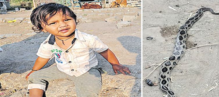 ఏకంగా చనిపోయింది అనుకున్న పాము ఆ బాలుడిని కాటువేసే చివరికి ప్రాణాలు పోవడానికి కారణం అయింది. ఈ ఘటన ఆదిలాబాద్ జిల్లా భీంపూర్ మండలం లో వెలుగులోకి వచ్చింది. బైరెడ్డి సంతోష్ - అర్చన దంపతుల కుమారుడైన రెండేళ్ల నైనిక్ గురువారం వేకువజామున నిద్రలేచి పక్కింటావిడ వద్ద ఆడుకుంటున్నాడు అని చెప్పాలి. అటువైపుగా ఒక విషపూరితమైన పాము రావడంతో దానిని గమనించిన గ్రామస్తులు కర్రలతో కొట్టి చంపారు. ఇక పాము లో కదలికలు లేకపోవడం తో చనిపోయింది అనుకుని పక్కకు జరిపారు.