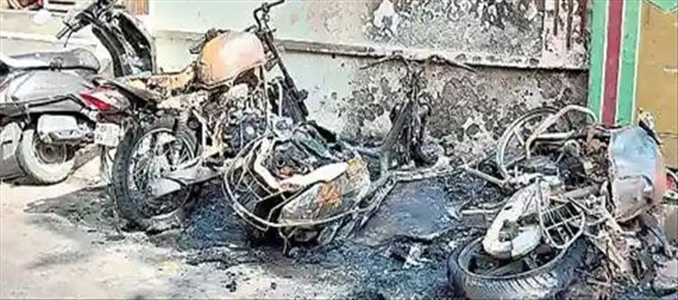 బాలాజీ నగర్ లోని చిమ్మన్న వీధిలో తెల్లవారుజామున 3.30 గంటల సమయంలో బాంబు పేలినట్లుగా పెద్ద శబ్దం వచ్చింది. దీంతో ఒక్కసారిగా ఉలిక్కిపడి లేచిన స్థానికులు బయటకు వచ్చి చూశారు. దీంతో ఒక్కసారిగా షాక్ అయ్యారు. ఎందుకంటే బయట నాలుగు ద్విచక్ర వాహనాలు మంటల్లో కాలిపోతూ కనిపించాయ్. వెంటనే నీళ్లు పోసి వాటిని ఆర్పేశారు. కానీ అప్పటికే మూడు వాహనాలు పూర్తిగా కాలిపోగా.. ఇక ఒక వాహనం పాక్షికంగా దెబ్బతింది. కేసు నమోదు చేసుకున్న పోలీసులు సిసిటివి సీసీటీవీ ఫుటేజ్ పరిశీలించగా ఓ వ్యక్తి అదే వీధిలోని ఎనిమిది ద్విచక్ర వాహనాల్లోపెట్రోల్ దొంగలించి ఆ నాలుగు ద్విచక్ర వాహనాలకు నిప్పు పెట్టినట్లు గుర్తించారు. అతని కోసం గాలింపు చర్యలు చేపట్టారు.