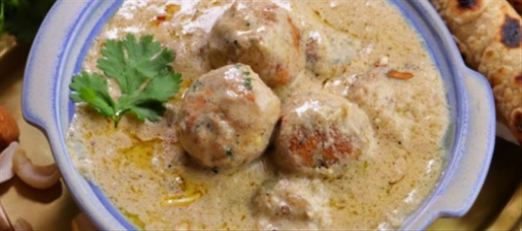 కోఫ్తా కోసం బోన్లెస్ చికెన్ ను మెత్తగా మిక్సీలో గ్రైండ్ చేసి ఉంచుకోవాలి.ముందుగా చికెన్ కోఫ్తాల కోసం ఉంచిన పదార్ధాలన్నీ వేసి నిమ్మకాయ సైజు బాల్స్ లాగా చేసి ఉంచుకోండి.కోఫ్తా వేపేటప్పుడు నూనెలో కోఫ్తాలు వేసి కదపకుండా ఒక నిమిషం వదిలేయాలి,ఆ తరువాత నెమ్మదిగా తిప్పుకుంటూ కాల్చుకుంటే కోఫ్తాలు విరగవు. కోఫ్తాలు మీడియం ఫ్లేమ్ మీద మాత్రమే వేపుకోవాలి. కోఫ్తాలను లైట్ గోల్డెన్ కలర్ వచ్చేదాకా మీడియం ఫ్లేమ్ మీద వేపుకోవాలి. ఇప్పుడు ఒక మిక్సీ జార్ లో నానబెట్టిన జీడిపప్పు,బాదాం పప్పు వేసి మెత్తని పేస్ట్ లాగా చేసుకోవాలి. ఇప్పుడు ఒక పాన్లో నూనె, నెయ్యి, యాలక, లవంగాలు, దాల్చిన చెక్క వేసి వేపుకోవాలి. తరువాత సన్నని ఉల్లిపాయ తరుగు వేసి ఉల్లిపాయలు ఎర్రబడేదాకా వేపుకోవాలి. ఉల్లిపాయలు ఎర్రగా అవుతున్నప్పుడు పచ్చిమిర్చి తరుగు, అల్లం వెల్లూలీ ముద్ద వేసి ఎర్రగా వేపుకోవాలి.ఇప్పుడు మెత్తగా రుబ్బుకున్న జీడిపప్పు పేస్ట్ వేసి నూనె పైకి తేలేదాక మీడియం ఫ్లేమ్ మీద వేపుకోవాలి.
