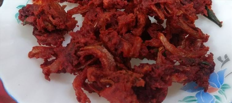 ముందుగా ఒక బౌల్ తీసుకుని అందులో ముందుగా తడుముకున్న బీట్ రూట్ తురుము, అల్లం వెల్లుల్లి పేస్ట్, నానపెట్టుకున్న పచ్చి శనగపప్పు, బియ్యపు పిండి, మొక్కజొన్న పిండి, కారం, సన్నగా తరిగిన ఉల్లిపాయ ముక్కలు, సన్నగా తడుముకున్న అల్లం ముక్కలు, జీలకర్ర వేసుకుని ఒకసారి గరిటెతో బాగా కలుపుకోవాలి.ఈ మిశ్రమంలోనే తగినంత ఉప్పు, కొత్తిమీర తురుము కూడా వేసుకుని పక్కన పెట్టుకోవాలి. ఇప్పుడు స్టవ్ ఆన్ చేసుకుని ఒక బాండీ పెట్టి తగినంత నూనె పోయాలి.నూనె బాగా కాగిన తర్వాత పిండి మిశ్రమాన్ని కొద్ది కొద్దిగా తీసుకుని పకోడాలు లాగా వేసుకోవాలి.ఎర్రగా వేగాక ఒక ప్లేట్ లో తీసుకుని సర్వ్ చేసుకోవాలి. ఈ స్నాక్స్ ఐటమ్ ని పిల్లలు బాగా ఇష్టంగా తింటారు. సాయంత్రం పూట ఒకసారి ఈ బీట్ రూట్ పకోడాలను ట్రై చేసి చూడండి మరి.