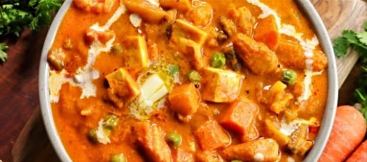 ఒక గిన్నెలో గ్రేవీ కోసం ఉంచిన టమోటో, జీడిపప్పు,, ఉల్లిపాయలు, మిరపకాయలు, దాల్చిన చెక్క, లవంగాలు ఉప్పు కూడా వేసి మూత పెట్టి టొమాటో జీడిపప్పు మెత్తబడే దాకా ఉడికించుకోవాలి తరువాత మెత్తగా గ్రైండ్ చేసుకోవాలి.మరొక పాన్లో నూనె వేడి చేసి దంచిన యాలకలు, దుంప ముక్కలు, కేరట్ , బేబీ కార్న్, బీన్స్, కాలీఫ్లవర్ ఉప్పు వేసి 2 నిమిషాలు వేపుకోవాలితరువాత బటర్ వేసి కూరలు లేత బంగారు రంగు వచ్చేదాకా మూతపెట్టి వేపుకుంటే చాలుబంగారు రంగు వచ్చాక అల్లం వెల్లులి పేస్ట్, పసుపు, ధనియాల పొడి, జీలకర్ర పొడి, కారం, గరం మసాలా, నలిపి వేసుకోవాలిటొమాటో పేస్ట్ పోసి బాగా కలిపి మూత పెట్టి నెయ్యి పైకి తేలేదాక మీడియం ఫ్లేమ్ మీద ఉడకనివ్వాలి. 5 నిమిషాల తరువాత బటానీ వేసి కలిపి వదిలేస్తే మెడియం ఫ్లేమ్ మీద 5 నిమిషాలకి నెయ్యి పైకి తేలుతుందిఆఖరుగా పనీర్ ముక్కలు, క్రీమ్, నెయ్యి వేసి ఒక నిమిషం ఉడికించి దింపేసుకోవాలి. ఈ కర్రీ ఒక్కసారి రుచి చూస్తే మళ్ళీ మళ్ళీ కావాలంటారు.. మరి మీరు కూడా ఒకసారి ట్రై చేసి చూడండి. !