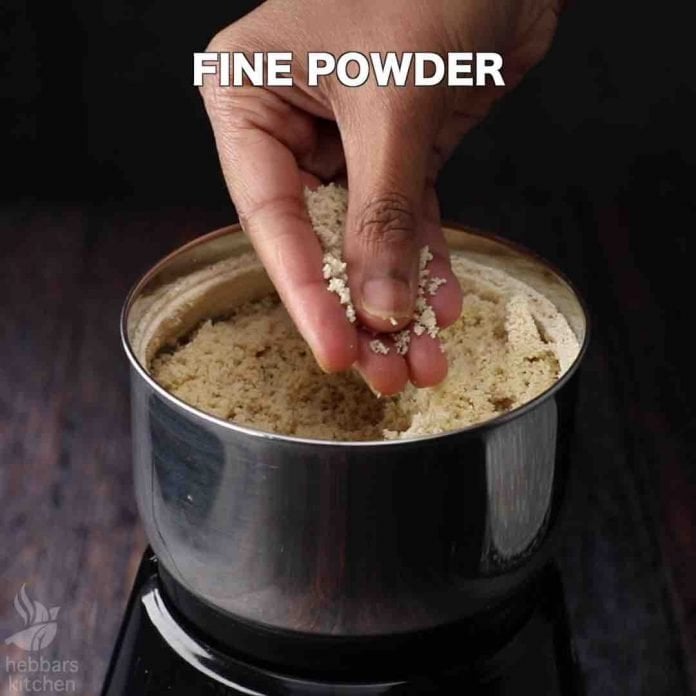 Recipe: First, put the cashews in a pan, fry for a while on medium heat, and let it cool before blending it to a coarse powder, once grinded try to sieve it to avoid lumps.