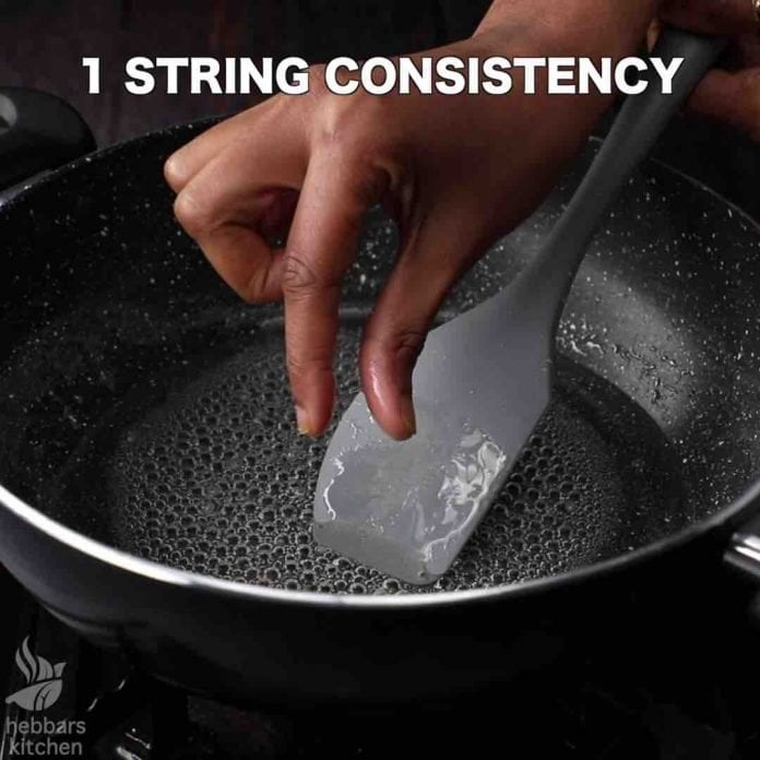 Put the pan in the cookstove and add sugar, water, and cook till it comes to a boiling state for 5 minutes.