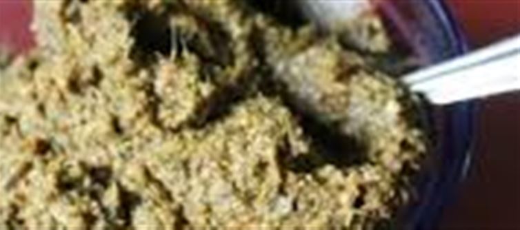 5. Warmness sesame oil in a pan, add hing, and sauté the paste until oil separates and the thokku turns dark green and fragrant.