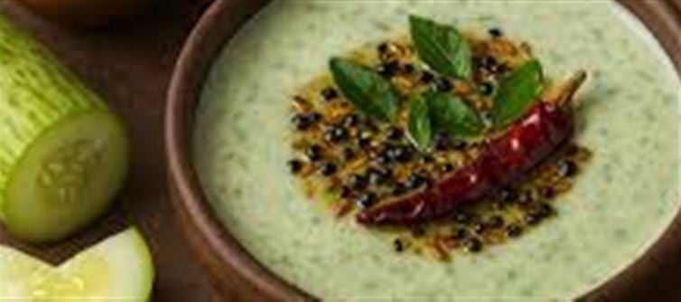 1. Put together the base – in a blender, combine chopped cucumber, grated coconut, green chilies, cumin seeds, and a little water. Combo to a smooth paste.