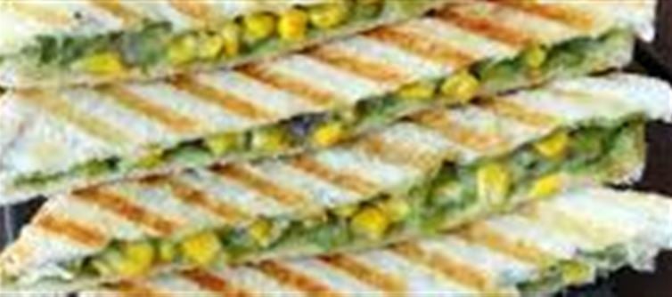 o Spread the corn cream cheese mixture evenly over one slice of bread.