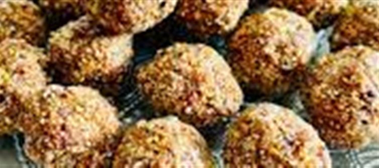 Grease your palms lightly with ghee and shape the mixture into small, round laddus.