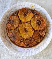· Place a plate or serving platter over the cake pan, and carefully flip the cake over. The pineapple topping should now be on top, beautifully caramelized.