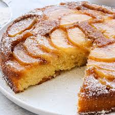 · Place a serving plate or cake stand over the pan and quickly flip the cake over. Gently lift off the pan. The apples should be perfectly caramelized and stick to the top of the cake. If any apples stick to the pan, simply rearrange them back on the cake.
