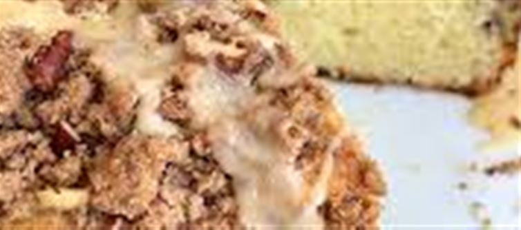 · The cake should be golden brown on top, and the streusel should be slightly crispy.