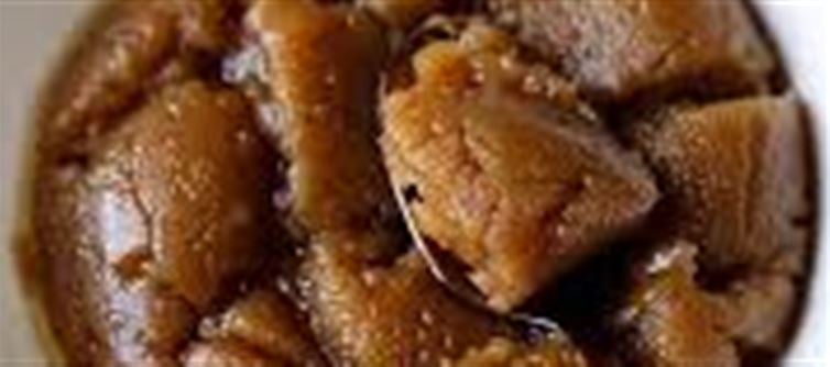Transfer the Kadha prasad into a greased plate or bowl.