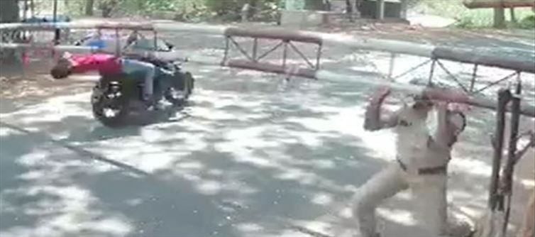 Hyderabad: CCTV footage has emerged of a youth being thrown to his death after being hit by an iron barrier while trying to cross the check post at high speed in Telangana. The accident, which was caught on a CCTV camera at a forest department check post, occurred on saturday, May 22nd. The two people were riding a bike in high speed towards Jannaram area of mancherial district of Telangana. The forest officer lowered the barrier gate at the Tabalpur check post and waved his hand to stop the bike. But the person who was riding the bike at high speed, crossed the check post with his head bowed and crossed the check post, while the head of the person sitting behind him hit an iron barrier and he was thrown to death on the spot. The person who was riding the bike survived with minor injuries.