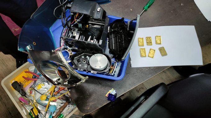 When the meat grinder machine broke down, six solid gold (99.99% purity) biscuits were packed in a black plastic box wrapped with a black carbon plastic sheet.