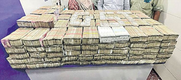 సాధారణంగా గోడలు బద్దలు కొడితే ఇటుకలు బయటకి వస్తాయి. కానీ ఇక్కడ మాత్రం ఒక వ్యాపార సంస్థ కార్యాలయ గోడలు బద్దలు కొడితే ఇటుకలు కాదు నోట్లకట్టలు బయటికి వచ్చాయి. ఈ ఘటన ముంబైలో వెలుగులోకి వచ్చింది. కేవలం గోడలను బద్దలు కొడితే మాత్రమే కాదు నేలను తవ్వి చూసినా కూడా నోట్ల కట్టలు వెండి ఇటుకలు బయట పడ్డాయి అనే చెప్పాలి. కల్పదేవి ప్రాంతంలో 35 చదరపు అడుగుల కార్యాలయంలో రహస్యంగా దాచి ఉంచిన సుమారు 10 కోట్ల విలువైన సొత్తును అధికారులు గుర్తించారు. చాముండా అనే వ్యాపారి కి చెందిన కార్యాలయంలో ఐటీ అధికారులు దాడులు నిర్వహించగా.. నేలలో ఏర్పాటు చేసిన రహస్య అరల నుంచి 9.8 కోట్ల నగదు 13 లక్షల విలువైన 19 కేజీల వెండి ఇటుకలను స్వాధీనం చేసుకున్నారు.
