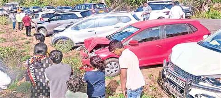 అయితే దీన్ని గమనించిన ముందు కారు నడుపుతున్న వ్యక్తి వాహన వేగాన్ని ఒక్కసారిగా తగ్గించాడు.. అంబులెన్స్ కి దారి ఇవ్వాలని ప్రయత్నించాడు. దీంతో ఆ కారు వెనుక వస్తున్న 7 కార్లు ఒకదాని వెనుక మరొకటి ఢీకొన్నాయి. కార్లు పాక్షికంగా దెబ్బతిన్నాయి అన్నది తెలుస్తుంది. ఈ క్రమంలోనే పలువురు వాహనదారులు చొరవ తీసుకుని ప్రమాదానికి గురైన కార్లను రోడ్డు పక్కకు తప్పించి.. చివరికి ట్రాఫిక్ క్రమబద్దీకరించడం గమనార్హం. అయితే వాహనాల మధ్య కనీస దూరం పాటించకపోవడం కారణంగానే ప్రమాదం జరిగి ఉంటుందని చేవెళ్ల ట్రాఫిక్ పోలీసులు చెబుతున్నారు.