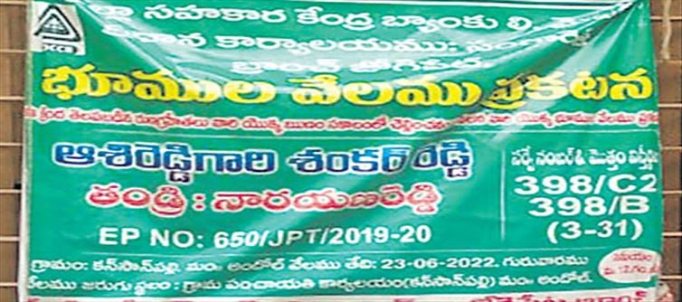ఇక అధికారులు ఇలా వ్యవహరించడం వల్ల కనీసం అటు ఊర్లో రుణం పుట్టే పరిస్థితి లేదని రైతు ఆందోళన చెందాడు. ఈ ఘటన సంగారెడ్డి జిల్లా ఆందోల్ మండలం కంసాన్పల్లి గ్రామంలో వెలుగులోకి వచ్చింది. శంకర్ రెడ్డి కి స్థానికంగా 3.31 ఎకరాల వ్యవసాయ భూమి ఉంది. స్థలానికి సంబంధించిన పత్రాలు సమర్పించి 2012-13 లో జోగిపేట పట్టణంలో రుణం తీసుకున్నాడు. పంట సరిగా పండక పోవడంతో చివరికి రుణం చెల్లించలేక పోయాడు. ప్రభుత్వం ప్రకటించిన రుణ మాఫీ పైన ఆశలు పెట్టుకున్నాడు. అదే సమయంలో బ్యాంక్ అధికారుల నుంచి ఒత్తిడి ఎక్కువైంది. ఇటీవల రుణం చెల్లించ నందుకు భూమిని వేలం వేస్తామంటూ పంచాయతీ కార్యాలయం వద్ద ఫ్లెక్సీ పెట్టడంతో ఊరు వదిలి వెళ్ళిపోయాడు ఆ రైతు.