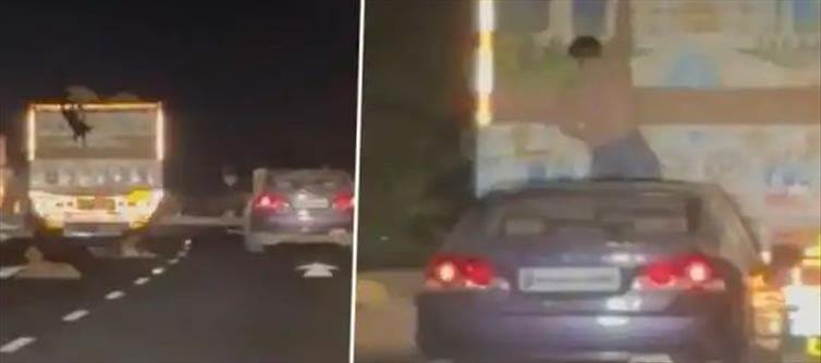 సినిమాల్లో కూడా ఇంత రిస్కీ విన్యాసాలను చూసి ఉండరు అనడంలో అతిశయోక్తి లేదు. ఇంతకీ ఏం జరిగిందంటే.. మహారాష్ట్రలోని సినీ ఫక్కిలో ఇటీవల చోరీ జరిగింది. సినిమాలకు మించిన యాక్షన్ సీక్వెన్స్ లాగా ఒక దొంగ ఏకంగా నడుస్తున్న ట్రక్ నుంచి మేకలను దొంగలించాడు. స్పీడుగా వెళ్తున్న లోడ్ నుంచి చాలా మేకలను రోడ్డుపై పడేస్తూ వెళ్ళాడు. అయితే అతను ఇలా చేస్తున్న సమయంలో ఇక వెనకాలే వస్తున్న మరో కారులో ఉన్న వ్యక్తులు వీడియో తీస్తారు. అయితే అతను ఇలా లారీలో నుంచి ఏకంగా మేకలను కింద పడేస్తున్న సమయంలో.. వెనకాలే ఒక కారు లారీ వేగాన్ని మ్యాచ్ చేస్తూ ముందుకు సాగింది.