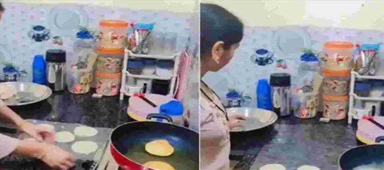 వైరల్ వీడియో ఓపెన్ చేస్తే ఒక కిచెన్ కనిపిస్తుంది. అందులో ఒక స్టవ్ ముందు బండపై ఓ మహిళ పూరి పిండి ముద్దలను పరచడం చూడవచ్చు. ఆమె పూరీలను రోలింగ్ స్టిక్ తో కాకుండా వెరైటీగా ఒత్తుతోంది. పిండిని ఓ కవర్ కింద పెట్టి దానిపై ఓ స్టీల్ ప్లేట్ తో గట్టిగా అదుముతోంది. ఆమె పెట్టిన ప్రెషర్ కారణంగా పిండి చక్కగా వత్తినట్టు గుండ్రంగా పూరీ ఆకారంలోకి వస్తుంది. అలా రెడీ అయిపోయిన పూరీ ఆకారపు పిండిని ఆమె వేడి వేడి నూనెలో వేస్తోంది. ఇంకేముంది చాలా త్వర త్వరగా పూరీలు తయారవుతున్నాయి. ఈ ట్రిక్ ప్రజలకు తెలియజేయాలనే ఉద్దేశంతో ఒక వీడియో తీసి దానిని సోషల్ మీడియాలో షేర్ చేశారు. ఆ ఐడియా ఆడవారితో పాటు మగవారిని కూడా బాగా ఆకట్టుకుంటోంది.
