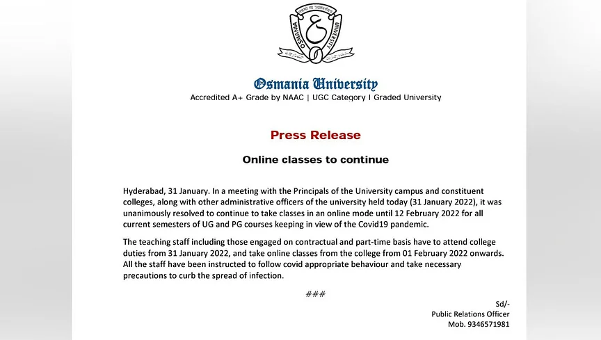 జవహార్ లాల్ నెహ్రూ టెక్నాలజికల్ యూనివర్సిటీ నిన్నటికి నిన్న వెల్లడించిన సమాచారం ఏమిటంటే.. ఫిబ్రవరి 13వ తేదీ కళాశాలలలో తరగతులు ప్రారంభించడానికి అన్ని జాగ్రత్తలు తీసుకుంటున్నామని వెల్లడించింది. అంతేకాదు ఫిబ్రవరి ఒకటవతారీకు నుంచి కళాశాలలు నిర్వహించాలని రాష్ట్ర ప్రభుత్వం వెల్లడించిన విషయం తెలిసిందే.. ఉస్మానియా యూనివర్సిటీ మాత్రం ఇందుకు భిన్నంగా కీలక నిర్ణయం తీసుకోవడంతో పలు చోట్ల పలు రకాలుగా వార్తలు వినిపిస్తున్నాయి.