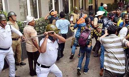 স্ট্র্যাটেজি বদলে হিন্দু জাগরণ মঞ্চ যে এনআরএসের সামনে থেকে মিছিল শুরু করেছে, সে খবর ইতিমধ্যেই পৌঁছেছিল কলকাতা পুলিশের সদর দফতরে। তাই দ্রুত এস এন ব্যানার্জি রোডে ছুটে যান ডিসি পদমর্যাদার এক আধিকারিক। প্রস্তুতি না থাকায় তাঁর সঙ্গেও বড় বাহিনী ছিল না। কিন্তু ওই ডিসির নির্দেশে পুলিশ লাঠি চালিয়ে মিছিল ছত্রভঙ্গ করে দেয়। তবে হিন্দু জাগরণ মঞ্চ-র আজকের মিছিলে পুলিশ বেশ খানিকটা বেকায়াদায় পড়েছে । কারণ মিছিলকারীদের লুকোচুরি খেলায় অস্বস্তিতে পড়ে পুলিশ ।