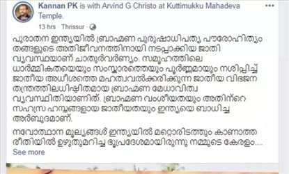 ദേവസ്വം ബോർഡിന്റെ പരിധിയിൽ പെടുന്ന ക്ഷേത്രങ്ങളിൽ ഇത്തരത്തിലുള്ള ജാതി വിവേചനങ്ങൾ ഉണ്ടാകുന്നതിനെതിരെയും സോഷ്യൽ മീഡിയ രംഗത്തെത്തിയിട്ടുണ്ട്. നവോത്ഥാനപരമായി ഏറ്റവും മുന്നിട്ട് നിൽക്കുന്ന കേരളത്തിൽ തന്നെ ഇത്തരത്തിലൊരു അവസ്ഥ ഉണ്ടായത് സോഷ്യൽ മീഡിയയെയും ചൊടിപ്പിച്ചിരിക്കുകയാണ്.