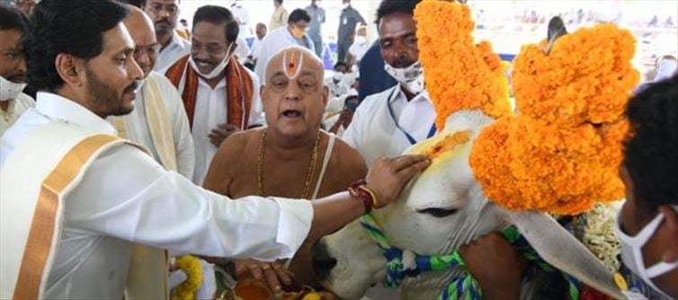 కనుమపండుగ రోజు నరసారుపేటలో జరిగిన గోపూజ పద్దతిలోనే ప్రభుత్వం రాష్ట్రవ్యాప్తంగా 2679 దేవాలయాల్లో గోపూజలు చేయించింది. టీటీడీ+ఇస్కాన్ సహకారంతో 108 గోవులను నరసరాపుపేట మున్సిపల్ స్టేడియంలో పెద్ద ఎత్తున పూజలు చేశారు. తన మతంగురించి జగన్ ఏరోజూ ఎక్కడా ప్రస్తావించలేదు. కానీ చంద్రబాబు మాత్రమే ఇపుడు పదే పదే తాను హిందువునని ప్రకటించుకుంటున్నారు. పైగా తమ ఆరాధ్యదైవం వెంకటేశ్వరస్వామిగా చెప్పుకుంటున్నారు. నిజానికి చంద్రబాబుకన్నా దివంగత ముఖ్యమంత్రి వైఎస్సారే ఎక్కువగా తిరుమల శ్రీవారిని దర్శించుకున్నారేమో. చంద్రబాబు ఒకేరోజు రాత్రి విజయవాడలో 35 దేవాలయాలను కూల్చేస్తే వాటి పునరుద్ధరణకు జగన్ ఈమధ్యనే శంకుస్ధాపన చేశారు. ఇక్కడ గమనించాల్సిన విషయం ఏమిటంటే టీడీపీ, బీజేపీ మొదలుపెట్టిన మత పరమైన రాజకీయాలను జగన్ కూడా మతపరమైన కార్యక్రమాలతోనే గట్టి రిప్లై ఇచ్చారు.