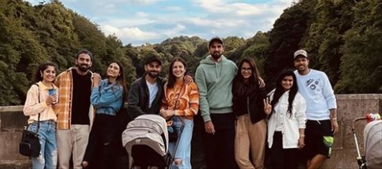 The indian cricket team is not only sweating it out on the field, but they are also having a great time with their english teammates. anushka sharma posted a photo with her husband virat kohli, their daughter Vamika, and other members of the indian cricket team with their partners on Instagram. In the photo, KL rahul and athiya shetty are also seen posing together.
