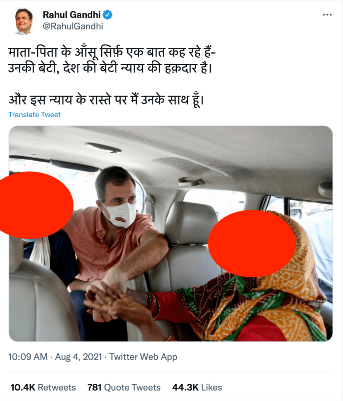 Rahul was said to have posted in this tweet a photo of the girl's parents rape. On wednesday the former National Chairman of the congress, rahul gandhi, met the family, following the rape and killing of a kid in Delhi. He published a photo on his twitter after the meeting, which included the parents of the victim. The National Child Rights Commission called for action on the twitter handle that would violate children's rights and pox laws by posting the photograph on Twitter. This requires the removal of the tweet from Twitter.