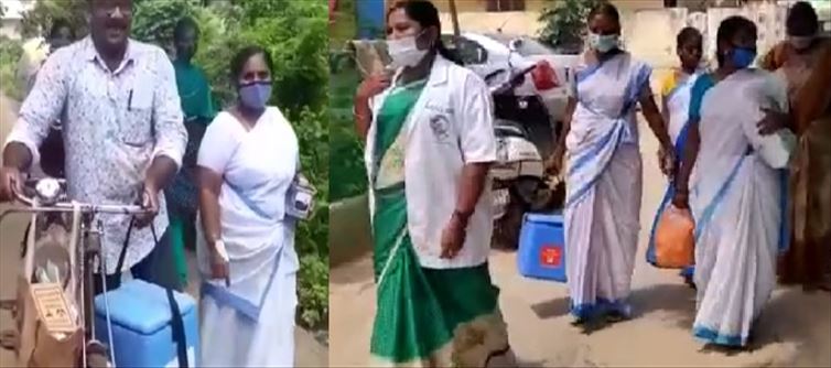 We must all remember the time before the pandemic was the street seller (Pitchman) who walks through our streets yelling the products they sell. After the pandemic, these kinds of sellers were scarce. But watch the below video from the telugu state where the health workers carrying the covid-19 vaccine and shouting, inviting the unvaccinated to get jabbed if they have not.  They seem to have been well prepared with the necessary items.