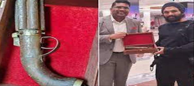 160 വർഷം പഴക്കമുള്ള തോക്കാണ് റിയാസ് കിൽട്ടൺ എന്ന പ്രവാസി മലയാളി വ്യവസായി അല്ലു അർജുന് സമ്മാനിച്ചിരിക്കുന്നത്. യുഎഇ സന്ദർശനത്തിന് എത്തിയപ്പോഴാണ് അല്ലുവിന് റിയാസ് അപൂർവ സമ്മാനം കൈമാറിയത്.സംവിധായകൻ ഒമർ ലുലു ഇതിൻറെ ചിത്രങ്ങൾ സോഷ്യൽമീഡിയയിലൂടെ പങ്കുവെച്ചിട്ടുണ്ട്. കേരളത്തിൽ വ്യാജ പുരാവസ്തുക്കളുടെ വിപണനവുമായി ബന്ധപ്പെട്ട് മോൻസൻ മാവുങ്കൽ എന്നയാൾ അറസ്റ്റിലായ സമയത്തായതിനാൽ തന്നെ ഈ ചിത്രങ്ങളുമായി നിരവധി ട്രോളുകളും സോഷ്യൽമീഡിയയിൽ വ്യാപകമാണ്. അല്ലു അർജുന് തോക്ക് സമ്മാനിക്കുന്ന റിയാസ് കിൽട്ടണിൻറെ ചിത്രങ്ങൾ സോഷ്യൽ മീഡിയയിൽ ഏറെ വൈറലാണ്.