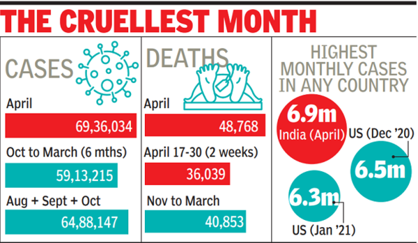 According to the WHO data used in the survey, in 2021, the maximum number of cases of Covid came from march to june, while the highest number of deaths occurred between May and june 2021.