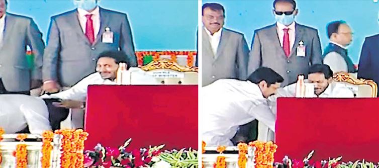 మరి అలాంటి హోదాలో ఉండి కూడా చాలా మంది మంత్రులు జగన్ పట్ల అపరిమితమైన భక్తి ప్రపత్తులు, భయం, గౌరవం చూపించారు. అంత పెద్ద వేదికపై ఆహుతులందరూ చూస్తుండగానే.. వేదికపై మోకాళ్లపై కూర్చుని మరీ ముఖ్యమంత్రి కాళ్లకు నమస్కరించడం చూస్తే.. మరీ అంతగా సాగిలపడాలా.. ముఖ్యమంత్రి మెప్పు కోసం మరీ అంతగా పాకులాడాలా అనిపించక మానదు. కొత్త మంత్రులు అమర్నాథ రెడ్డి, జోగు రమేశ్ ఈ విధంగా ఏకంగా వేదికపైనే మోకాళ్లపై కూర్చుని మరీ జగన్కు పాదాభివందనం చేశారు.