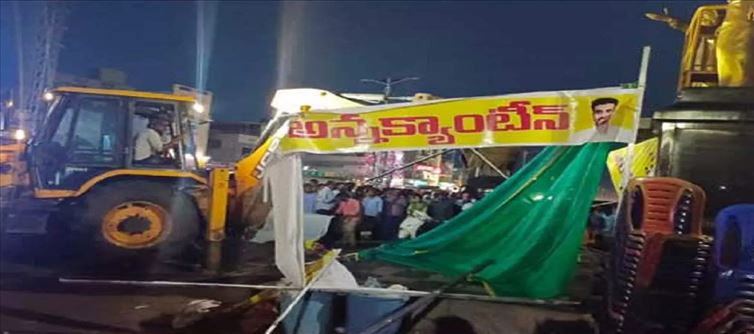 ఈ క్యాటీన్ను గురువారం మధ్యాహ్నం నగరపాలక సంస్థ అధికారులు మొదటిసారి కూలగొట్టారు. అయితే మళ్లీ తెదేపా నేతలు దగ్గరుండి నిర్మించారు. దాదాపు 200 మంది టీడీపీ కార్యకర్తలు దగ్గరుండి నిర్మాణ పనులను కొనసాగించారు. అయితే.. ఈ పనులు పూర్తైన వెంటనే మరోసారి నగరపాలక సంస్థ అధికారులు వచ్చారు. ఈసారి పోలీసులతో వచ్చి అనుమతి లేకుండా నిర్మించిన క్యాంటీన్ ను తొలగించాలని చెప్పారు. తొలగించేందుకు టీడీపీ నేతలు ఏమాత్రం ఒప్పుకోలేదు.