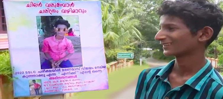 ക്ലൂളിങ് ഗ്ലാസ് വെച്ചിരിക്കുന്ന ഒരു കൊച്ചു മിടുക്കന്റെ ഫോട്ടോയ്ക്കൊപ്പം വെറൈറ്റി ആയിട്ടൊരു തലക്കെട്ടുമായിരുന്നു ഫ്ളക്സിലുണ്ടായിരുന്നത്. ചിലർ വരുമ്പോൾ ചരിത്രം വഴി മാറും ഇതായിരുന്നു തലക്കെട്ട്. പത്തനംതിട്ട കൊടുമൺ സ്വദേശിയായ ജിഷ്ണു എന്ന കുഞ്ഞാക്കൂ ആണ് എസ്എസ്എൽസി വിജയം ആഘോഷിക്കാൻ സ്വന്തം ഫോട്ടോ വെച്ച് ഫ്ളക്സ് അടിച്ച് സ്വയം അഭിനന്ദനങ്ങൾ നൽകിയത്. 2022 എസ്എസ്എൽസി പരീക്ഷയിൽ മരണമാസ് വിജയം നേടിയ കുഞ്ഞാക്കു എന്ന എനിക്ക് എന്റെ തന്നെ അഭിനന്ദനങ്ങൾ ഇതായിരുന്നു ഫോട്ടോയുടെ അടിക്കുറിപ്പ്. വെറൈറ്റി ഫ്ളക്സ് കണ്ട നാട്ടുകാർക്കും ചിരിയും കൗതുകവും അടക്കാൻ ആയില്ലെന്ന് വേണം പറയാൻ.