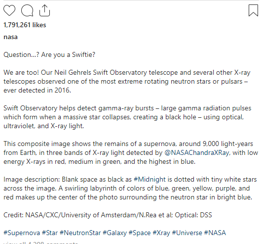 In the darkness of midnight, with thousands of stars shining brightly in the background, a flash of colors supernova photo goes viral. A supernova is an actual explosion of a star! Depending on its size, its energy is dispersed in all directions in space. When a star explodes, the remnants it emits can be seen thousands of light-years away. A photo of the explosion debris from one such supernova. In this photo, a colorful supernova shines brightly against a backdrop of thousands of stars in the darkness of midnight. This supernova photo was taken by NASA's Chandra X-ray Observatory telescope. This has been published by nasa on its instagram page.