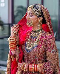 Nowadays brides also like to wear hot pink bangles. This bride is wearing heavy bracelets with pink chuda, which is giving it an elegant look. You can wear it on anything from suit to saree.