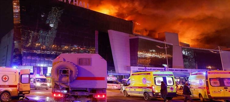 മോസ്കോയിലെ ക്രോകസ് സിറ്റി ഹാളിൽ വെള്ളിയാഴ്ച രാത്രിയോടെയാണ് ഐഎസ് ആക്രമണം നടന്നത്. നാല് പേരടങ്ങുന്ന സംഘം ഹാളിലേക്ക് കയറി ആൾക്കൂട്ടത്തിനു നേരെ വിവേചന രഹിതമായി വെടിവെക്കുകയായിരുന്നു. ഹാളിൽ അക്രമികൾ വലിച്ചെറിഞ്ഞ സ്ഫോടക വസ്തുക്കൾ വലിയ തീപിടിത്തവും സൃഷ്ടിച്ചു. ഹെലികോപ്റ്ററുകളിൽ വെള്ളമെത്തിച്ച് ആകാശത്തുനിന്ന് താഴേക്ക് വീഴ്ത്തിയാണ് തീ കെടുത്തിയത്. സംഭവത്തിൽ 137 പേർ കൊല്ലപ്പെട്ടു.