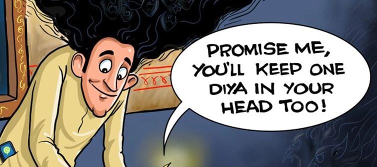 In the cartoon, the “head diya” is a metaphor for internal clarity: shining light on our fears, anxieties, unresolved thoughts — the “shadow demons” lurking in hair/brain space.