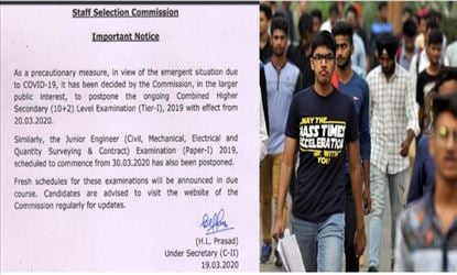 कोरोनावायरस के प्रकोप के मद्देनजर, कर्मचारी चयन आयोग ने 17 मार्च से शुरू हो रही SSC CHSL परीक्षा को स्थगित कर दिया है। एक नोटिस में, आयोग ने कहा है कि "COVID-19 और लार्जर पब्लिक इंटरेस्ट के कारण मौजूदा स्थिति को देखते हुए" वे SSC CHSL Tier- I 2019 को आज से स्थगित कर रहा है।