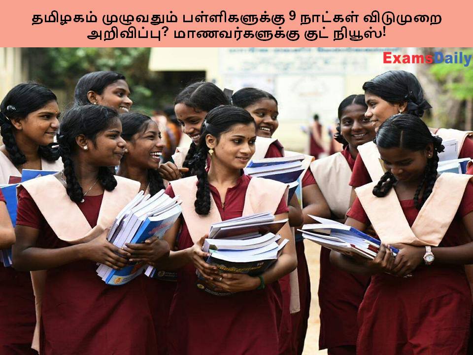 Tamil Nadu school Education minister Anbil Mahesh Poyyamozhi has said that school children in tamil Nadu will be given 9 consecutive days off. school students will be given a half-yearly holiday from december 25th to january 2nd.