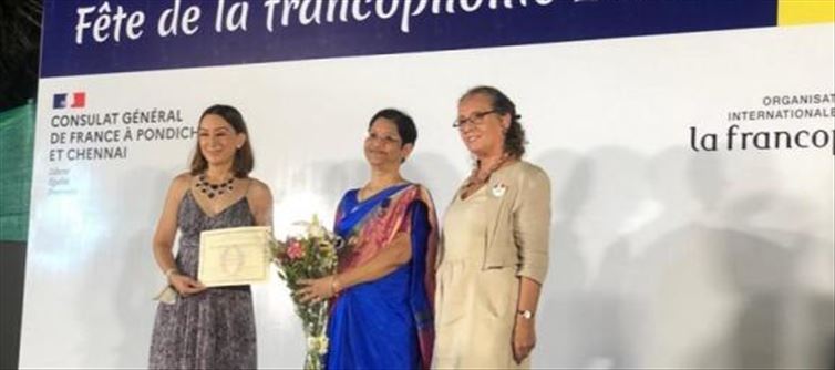 Lees Talpo Pare, the French Ambassador to pondicherry, presented the award. professor of the French Department nalini J. Thampi, who spoke on behalf of the university and the French Embassy, excelled in the fields of academic integration and women's rights in the French language, france, and India. It is customary for the French government to give the highest award to achievers in various fields such as art and education.