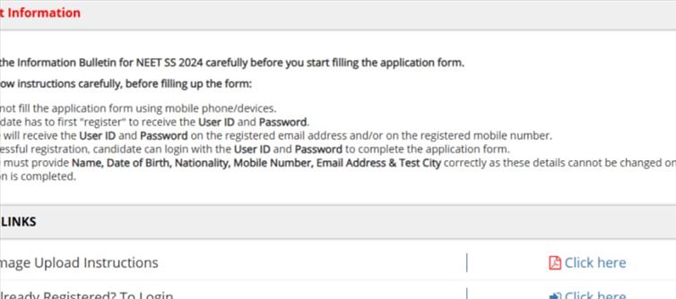 Step 3: Now click on at the NEET SS 2024 application hyperlink