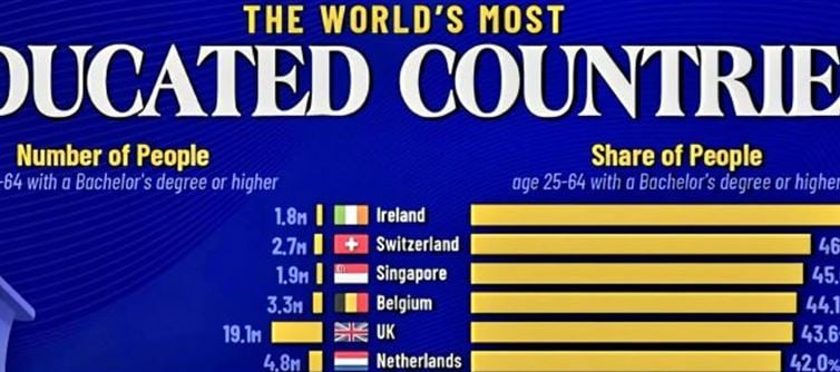 Ireland → 52% of adults have a bachelor’s or higher