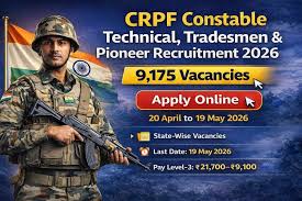 The CRPF Constable Technical & Tradesman Recruitment 2026 is a golden opportunity for candidates seeking a stable central government job. With over 9,175 vacancies, it offers a strong chance for 10th pass youth to join Indiaâs security forces.